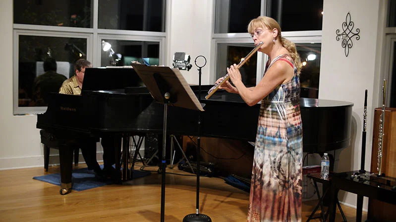 Florence Estrin has a wide ranging career as a flutist. Her Florence Family of Flutes performances on bass flute, alto flute and piccolo in addition to the standard flute are bringing raves from audiences.